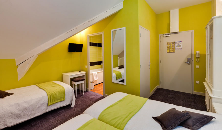 Chaque chambre est singulière. Elles accueillent de 1 à 3 personnes et sont équipées d’une salle de bain et de WC indépendants, d’une télévision et d’un accès Internet gratuit.